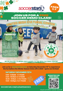 Get ready, Sunset District! Super Soccer Stars is coming to the United Irish Cultural Center (2700 45th Ave, SF) in January 2026!