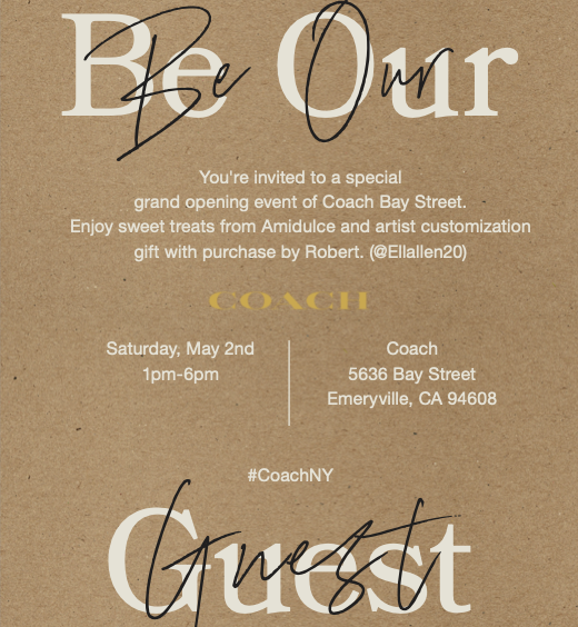 Bay Street Emeryville 5616 Bay St., EmeryvilleCoach Bay Street will be holding its grand opening celebration at its new Bay Street Emeryville location this Saturday, May 2, from 1 to 6 p.m. Enjoy sweet treats from […]